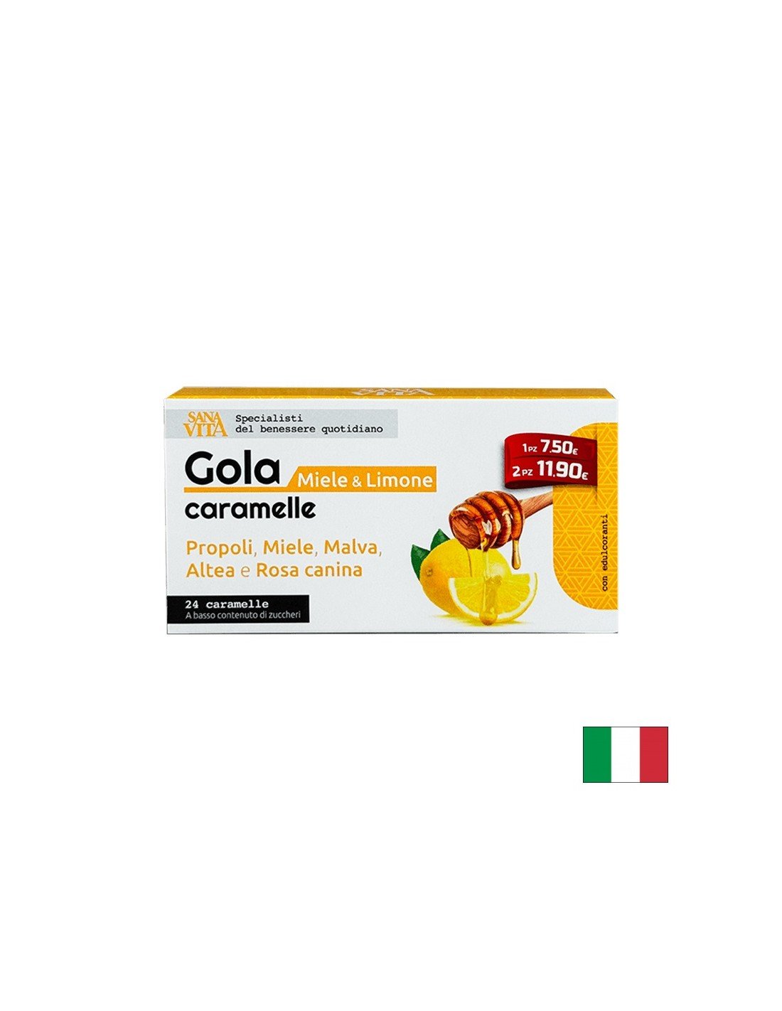 Билкови бонбони за гърло с прополис, пчелен мед, горски слез, бяла ружа и шипка, 24 броя с вкус на мед и лимон