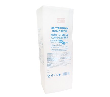 Бъдете първият написал отзив за “Нестерилни марлени компреси 7.5см / 7.5см х16 дипли х100 Medica” Отказ