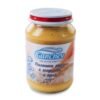 Състав: Зеленчуци 44.5% ( пюре от моркови, картофи, домати), пилешко месо 15%, обезмаслено мляко на прах 2%, слънчогледово олио, краве масло, вода.